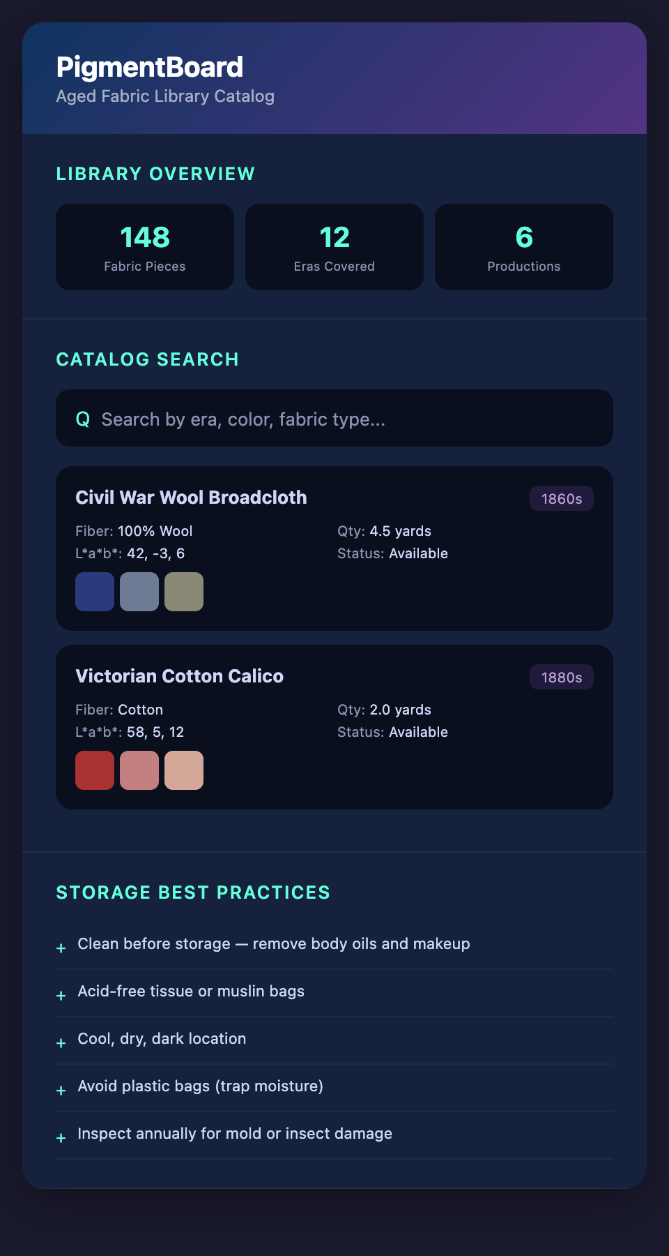Want to catalog your aged fabric library with degradation-model color data? Join the PigmentBoard waitlist.