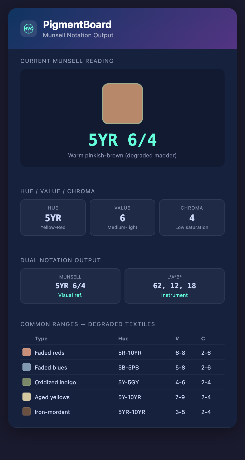 Want to connect Munsell-based assessment with digital degradation modeling? Join the PigmentBoard waitlist.