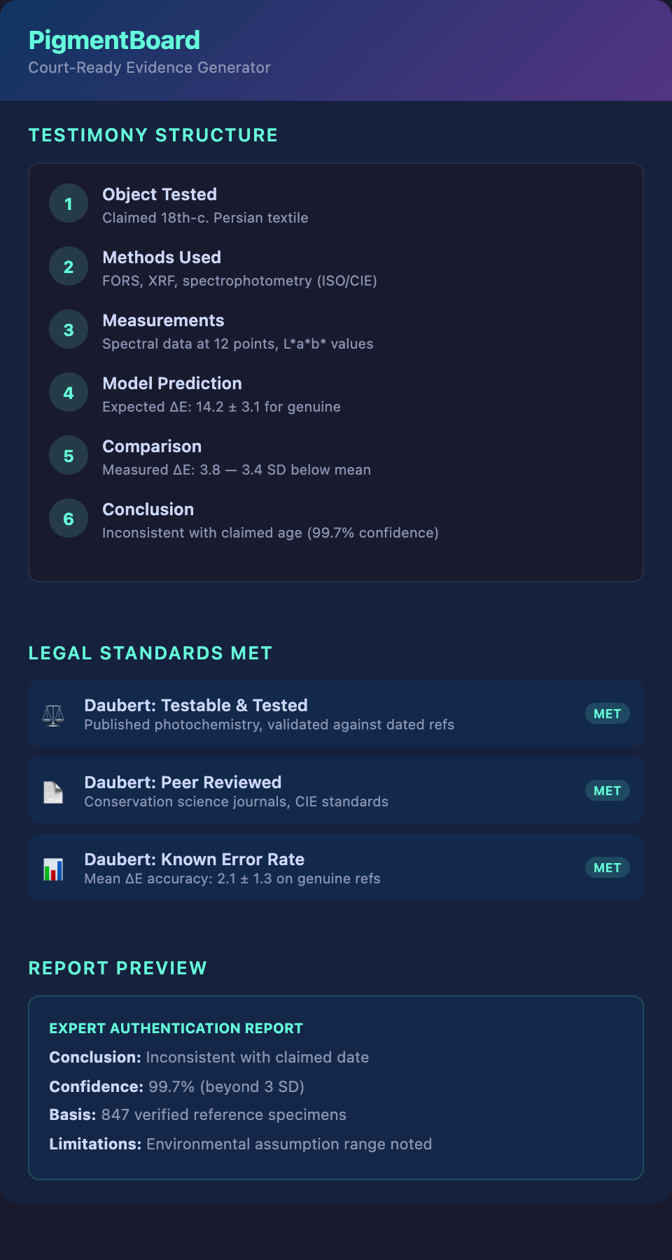 Want to generate court-ready degradation analysis for authentication cases? Join the PigmentBoard waitlist.