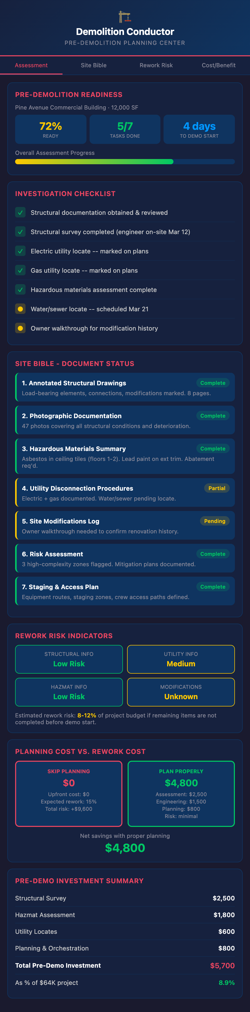 Pre-demolition planning takes time and costs money upfront. But compare: