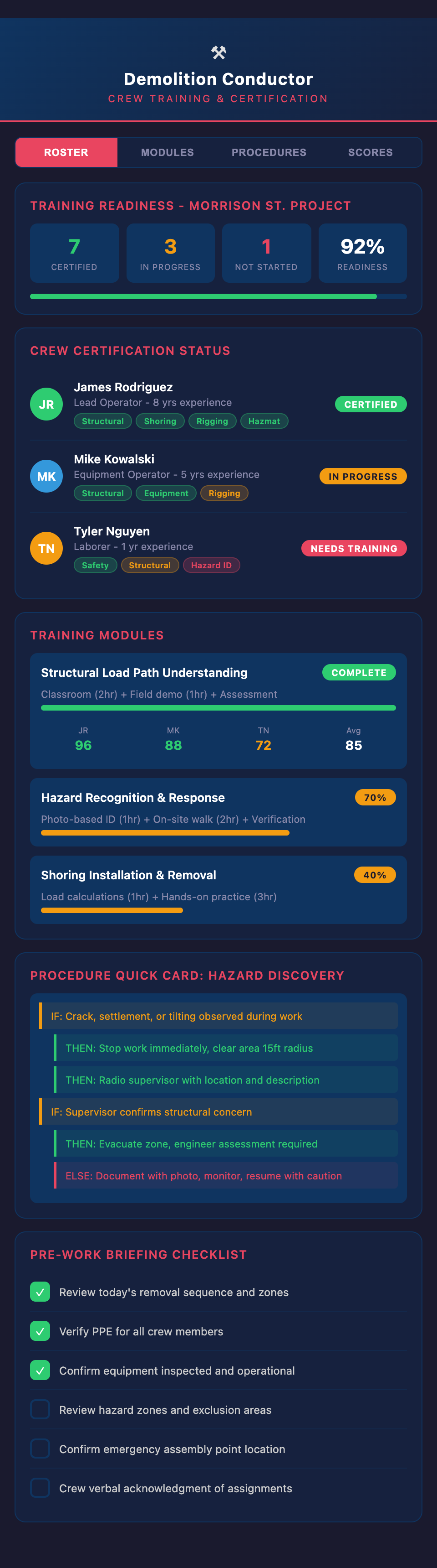 Complex demolition projects demand crews that understand the reasoning behind procedures, not just the procedures themselves. Formalized training creates that understanding.