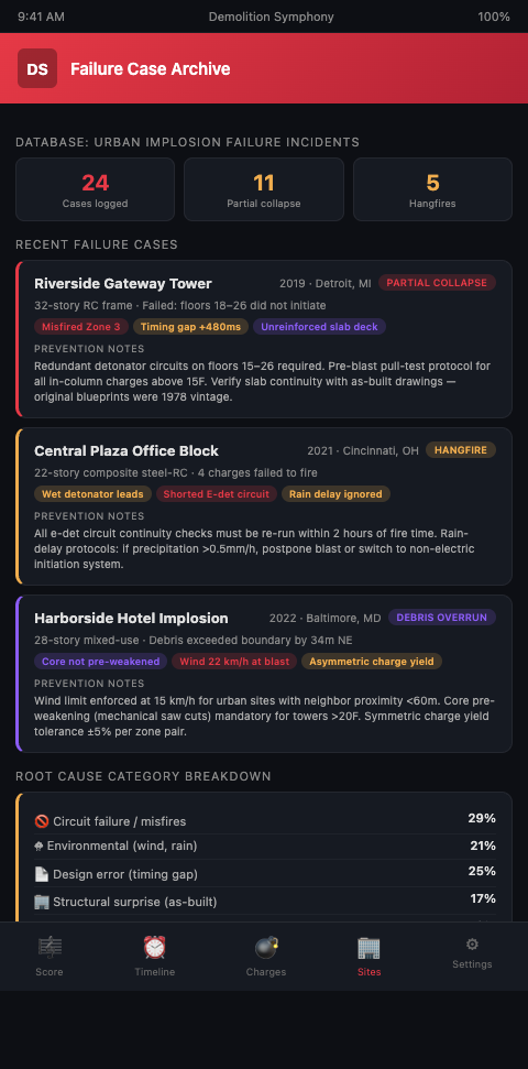 Urban high-rise implosion coordinators with an incident in their project history — or who have worked on projects where near-miss events occurred — understand that the difference between a clean implosion and a documented failure often traces to one specific moment where a workplan deviation went unreviewed or a connectivity check was abbreviated. The Demolition Symphony Planner builds those three verification steps into the score's mandatory pre-execution audit, so the checklist cannot be skipped. Join the waitlist to run your next urban high-rise implosion with a built-in root cause prevention framework embedded in the planning workflow from day one.