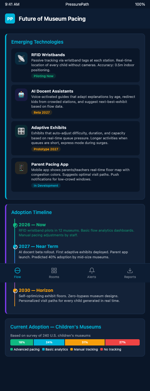 Either approach produces better capital decisions than the current standard brief, which asks none of these questions and leaves the bypass probability entirely to chance. The children's museum exhibit designers who will be most effective at capturing school-wave engagement over the next five years are those who integrate pacing specifications into their design process before capital decisions are made. PressurePath is designed for that integration—a wave-pressure simulation tool that speaks the language of exhibit briefs, floor plans, and school booking calendars. Join the waitlist to bring pacing-aware design thinking to your next installation.