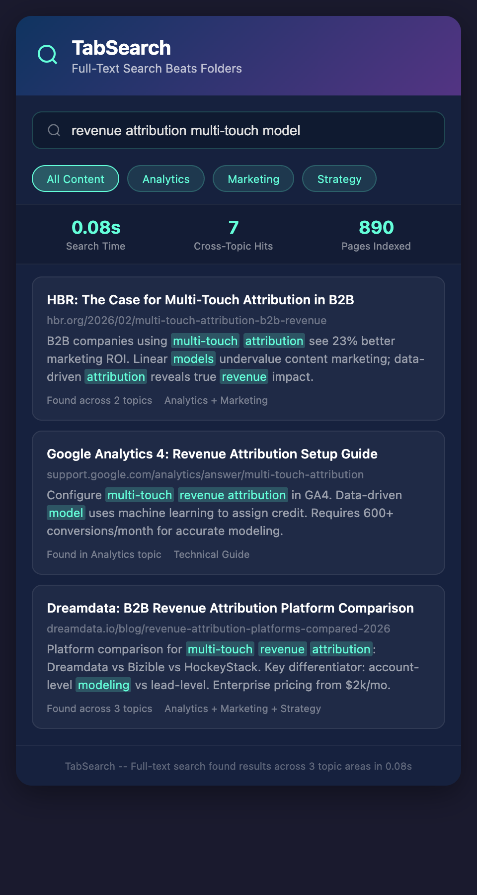 TabSearch Full-Text Search vs Folders mockup