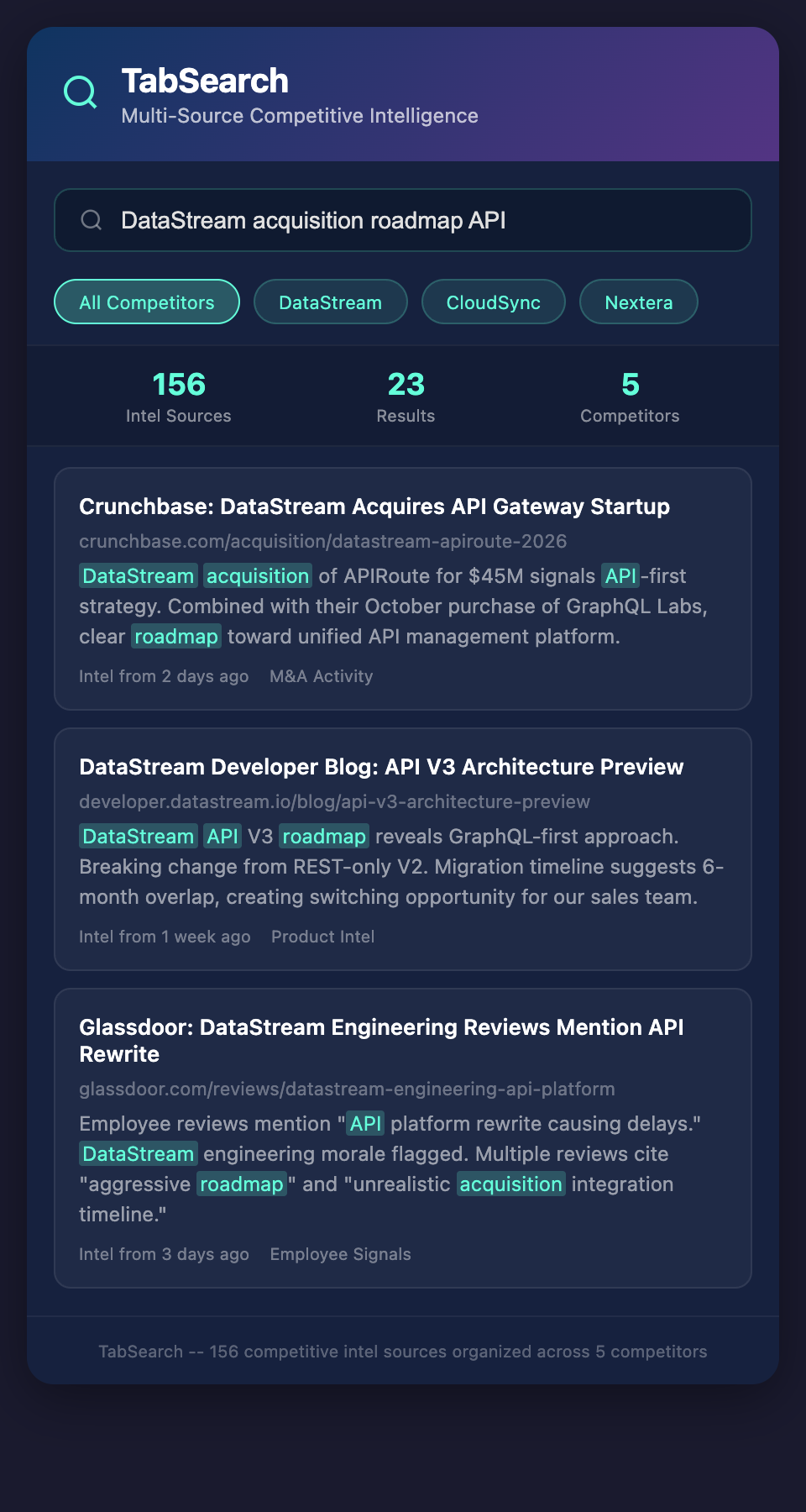Ready to stop losing competitive intelligence to the chaos of unorganized tabs? Join our waitlist to be among the first to access a solution that makes every piece of research you discover instantly searchable and shareable with your team.