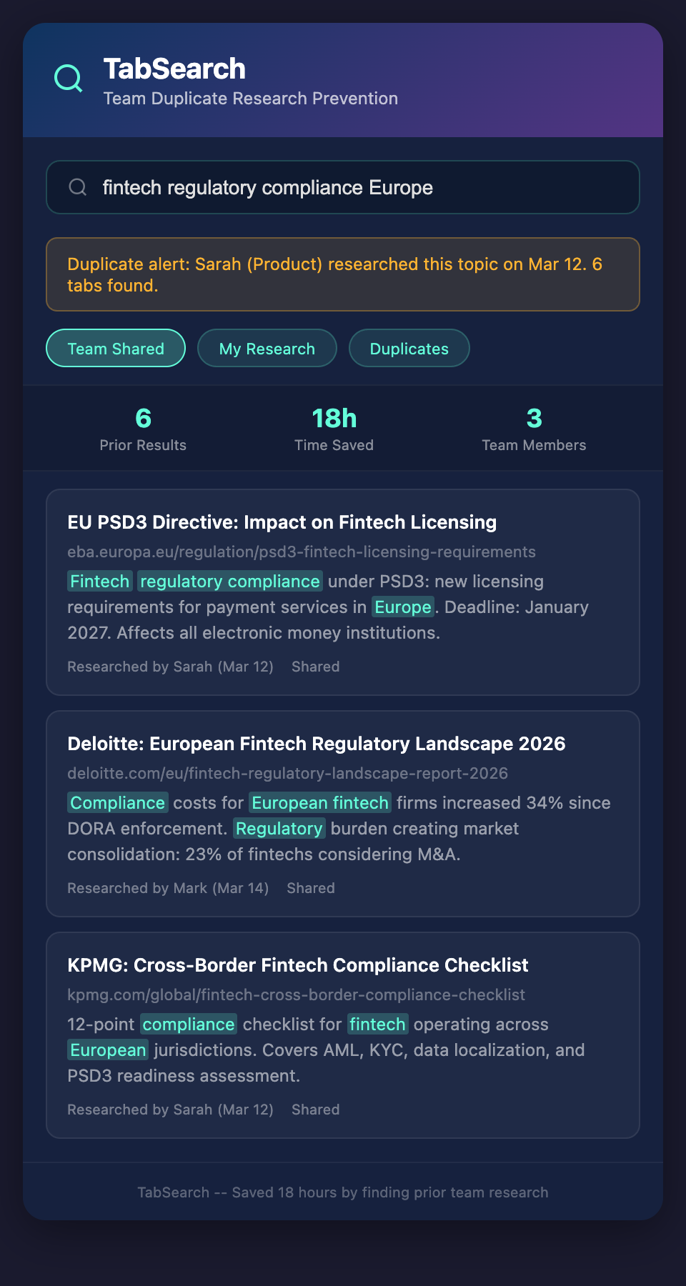 The ROI of eliminating research duplication is immediate and measurable.