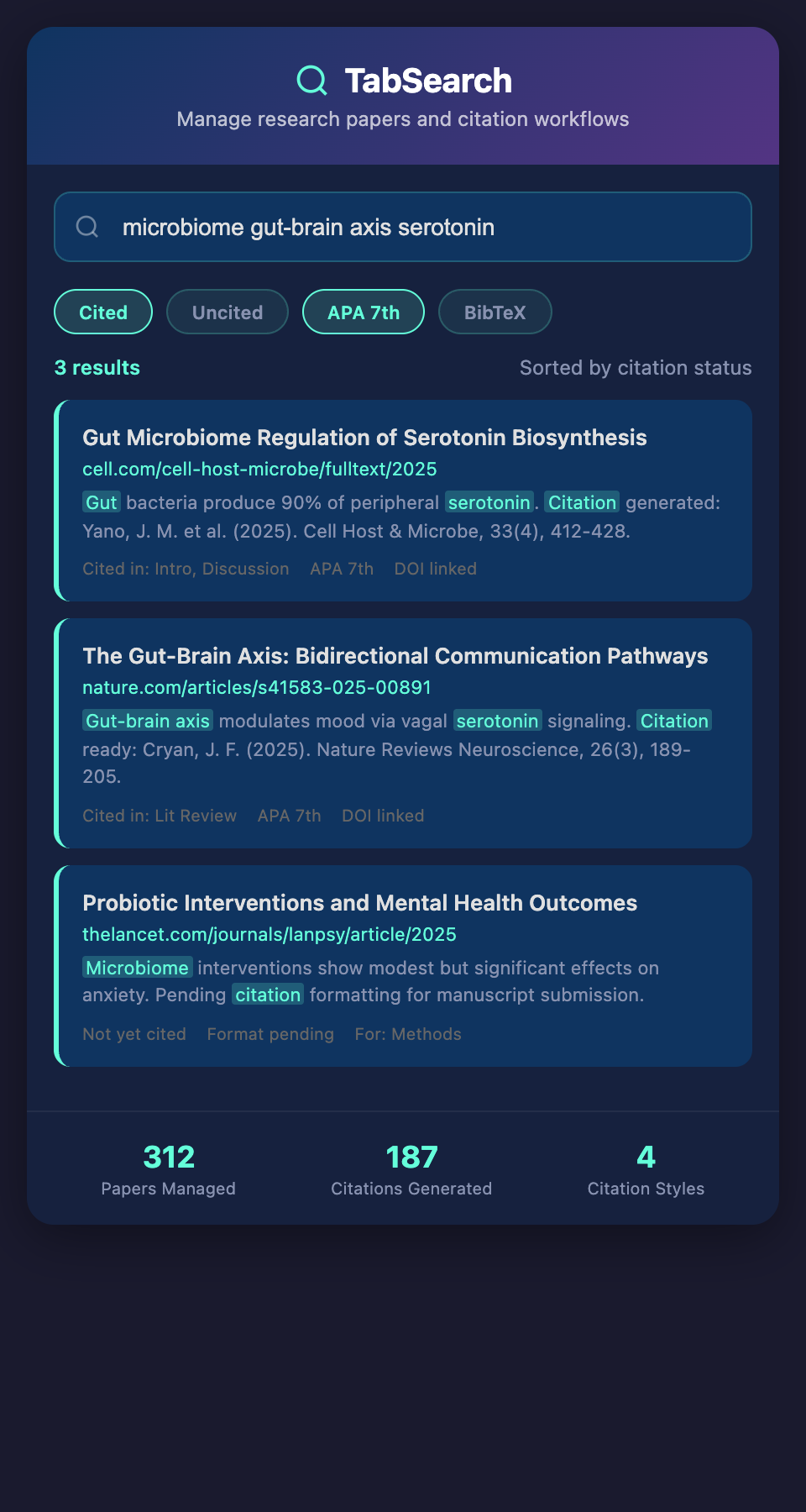 That's the entire workflow. No separate citation management tool.