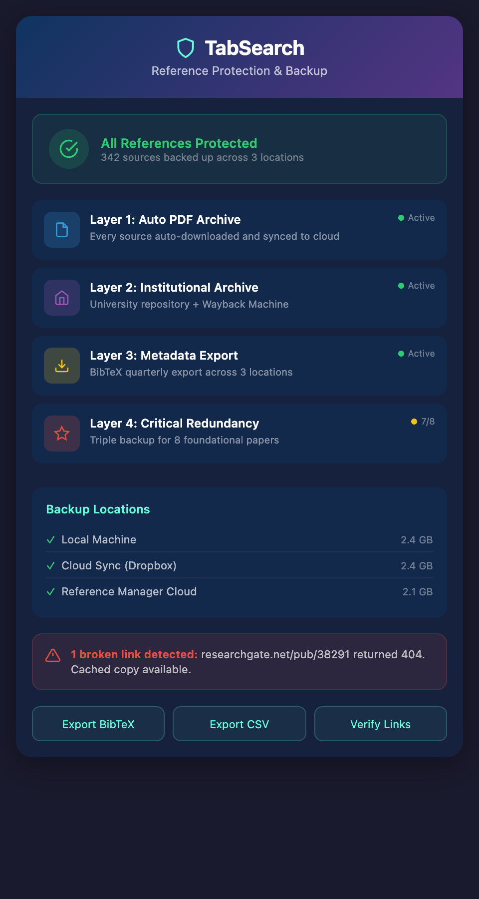 Ready to guarantee your research references never disappear? Join our waitlist for early access to a tool that automatically backs up, indexes, and preserves every research source you encounter, permanently.