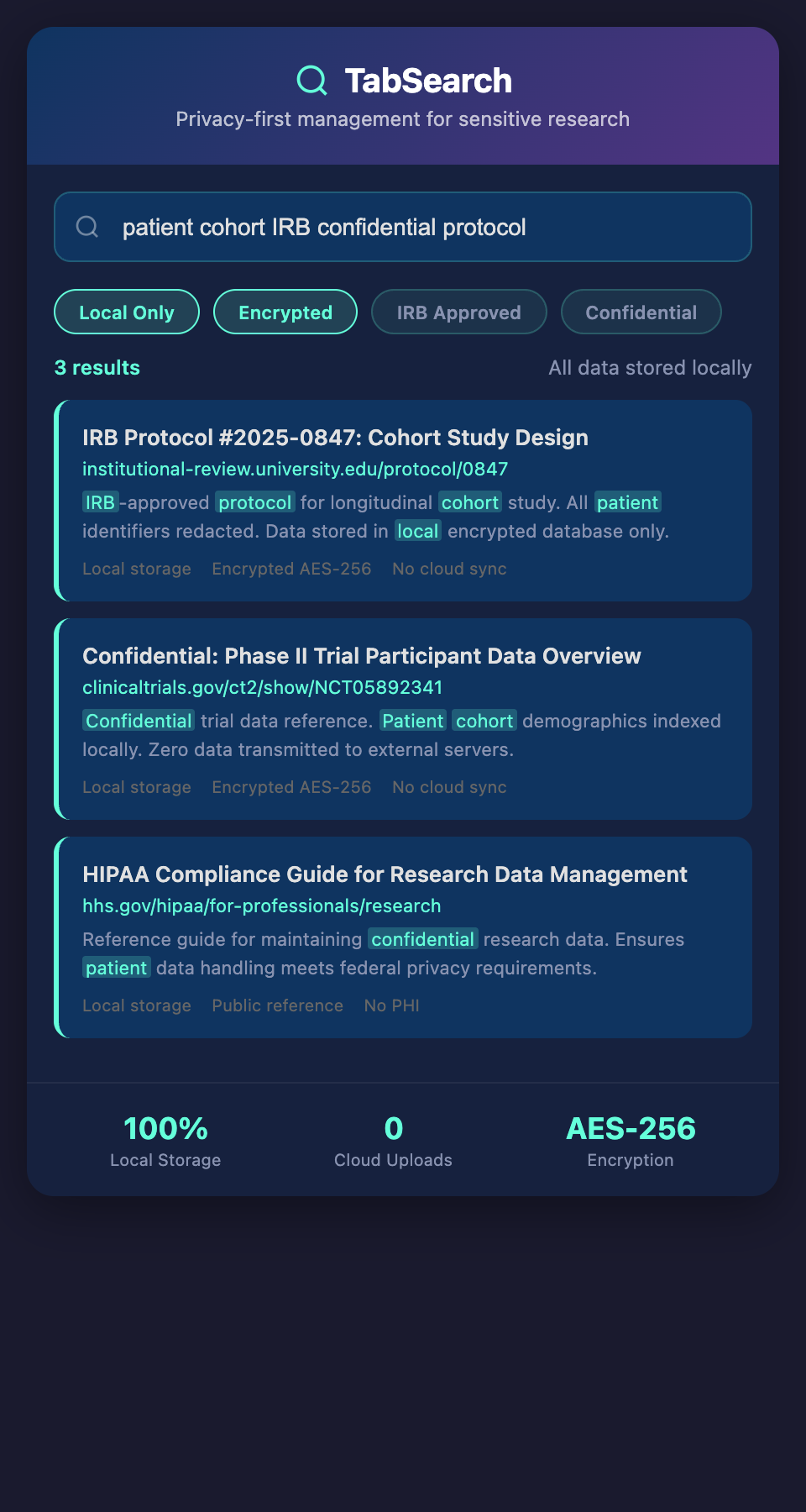 The most practical approach for privacy-conscious researchers is local-first: your research database lives on your computer, and any syncing is optional and encrypted.