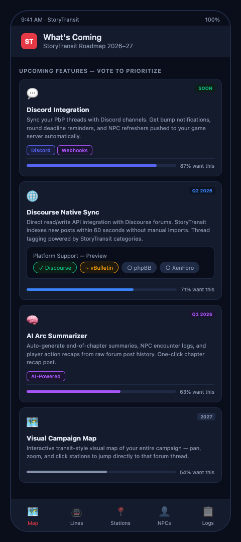 StoryTransit is being built with these requirements as baseline, not stretch goals. Play-by-post forum GMs who join the waitlist now are directly shaping what the platform prioritizes—your use cases, your archive depths, and your player management needs are informing the development roadmap. Sign up and help build the future pbp tools the community actually needs.