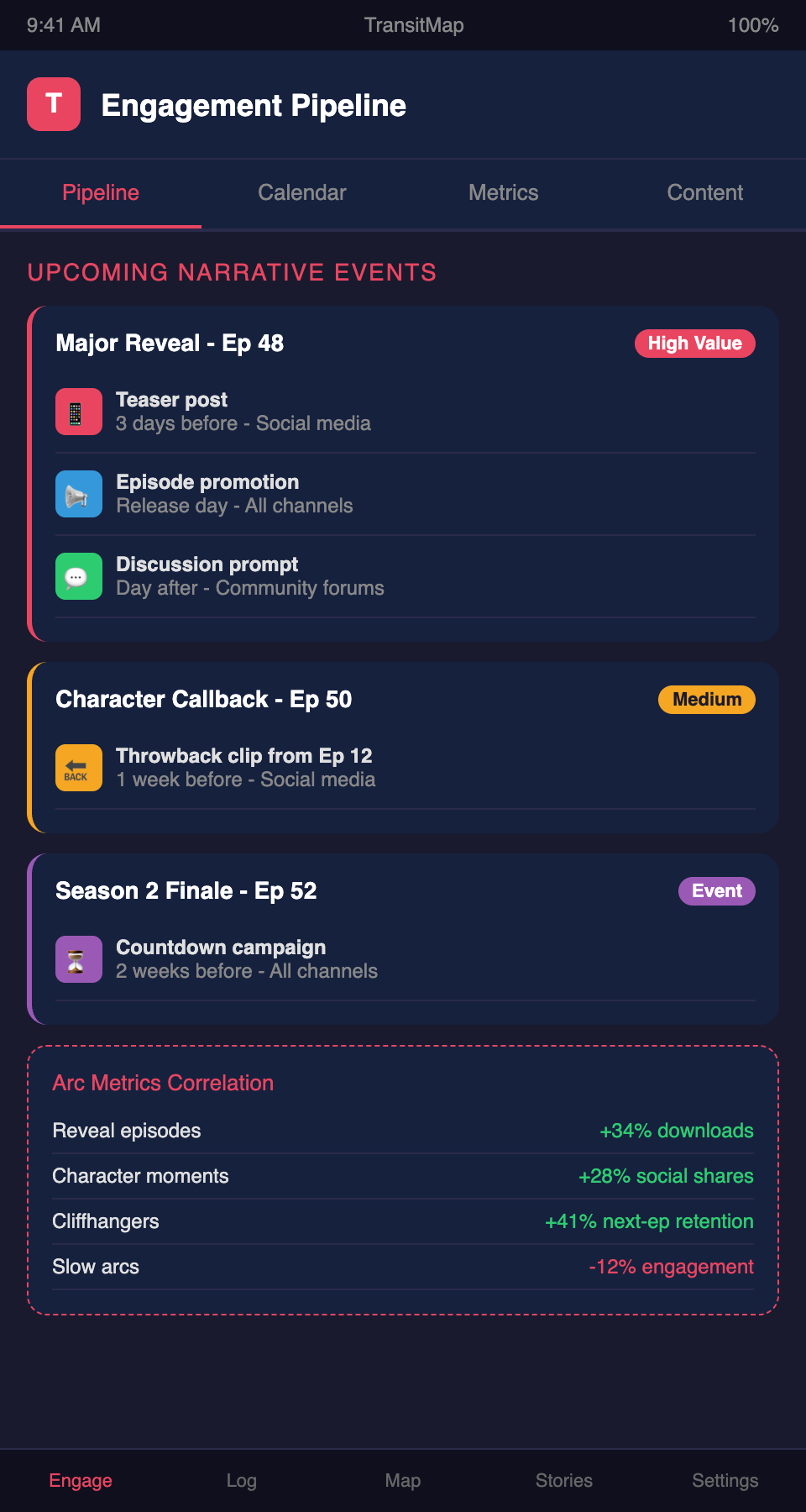 Want to turn your storyline tracker into an audience engagement engine? Join the TransitMap waitlist — visualize your show's narrative milestones alongside your content calendar, so every major story moment gets the promotional attention it deserves.