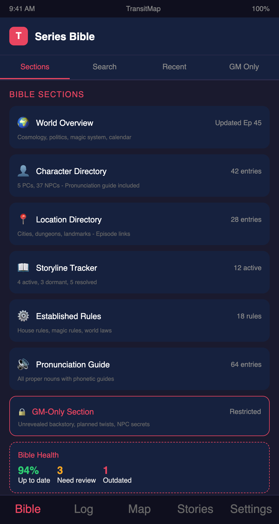 Building a series bible for your actual play show? Join the TransitMap waitlist — organize your show's canonical information as an interconnected map where characters, locations, and storylines are all linked and searchable.