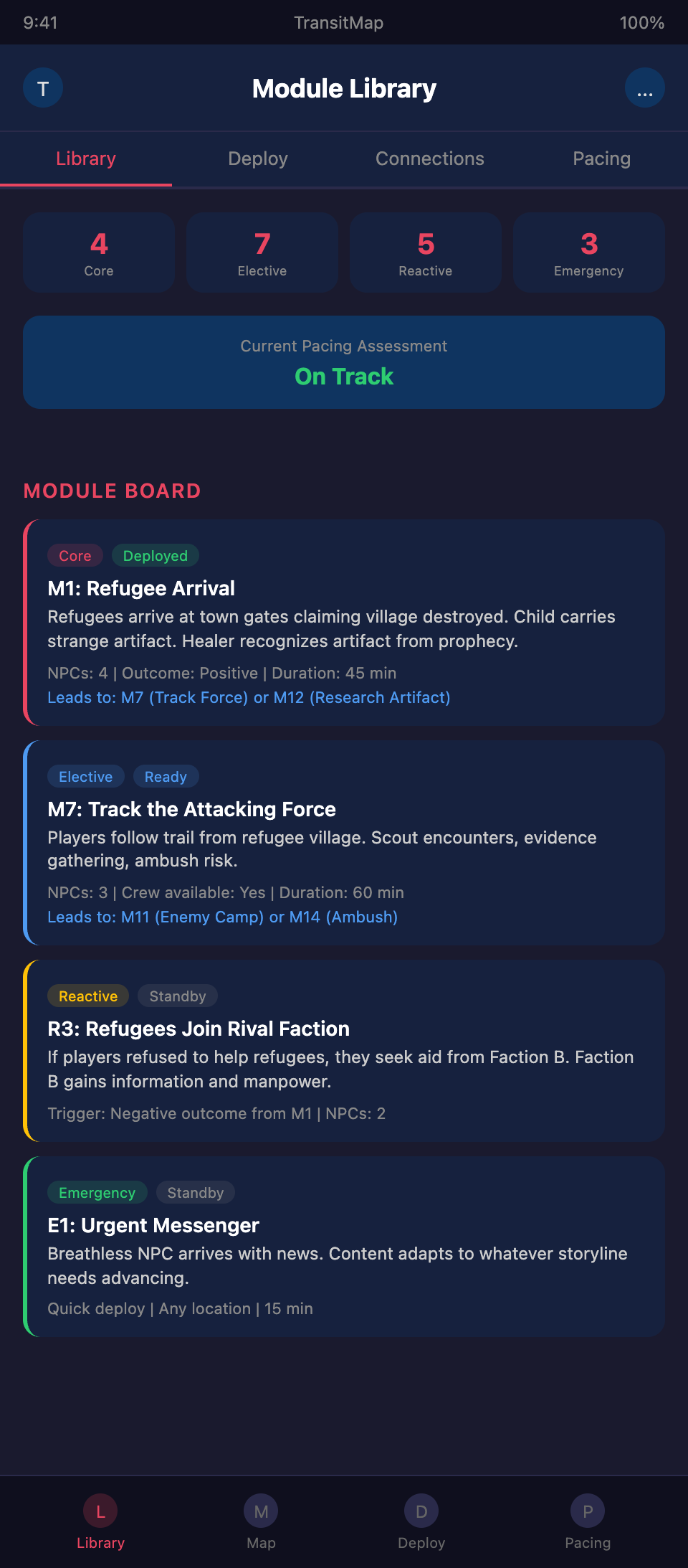 Want to design and deploy modular LARP plots? Join the TransitMap waitlist — map your module library as a transit network with interchangeable routes, connection points, and real-time deployment tracking.