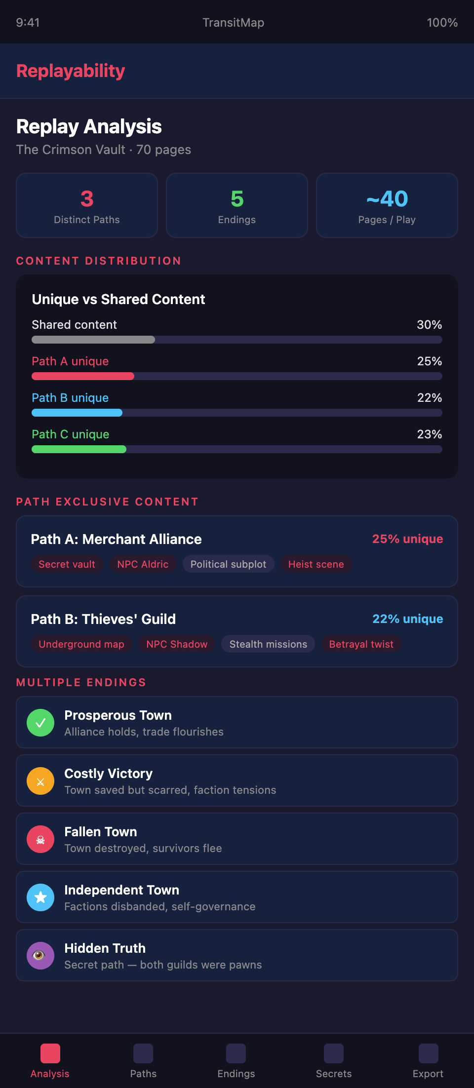 Designing a replayable adventure? Join the TransitMap waitlist — map every path, every exclusive content block, and every possible ending on a single visual transit map that shows the full scope of your adventure's replayable content.